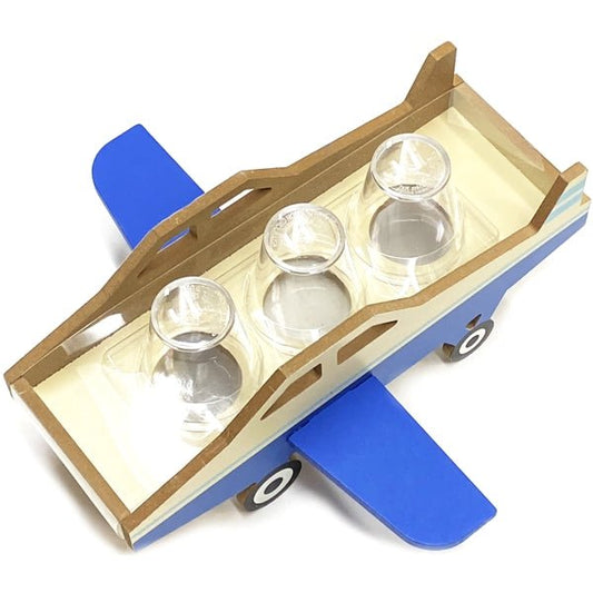Horizon 3-Shot Glass Decorative Display Holder Set - Blue/Airplane (4-Pieces) Plastic 2 fl. oz. Glasses