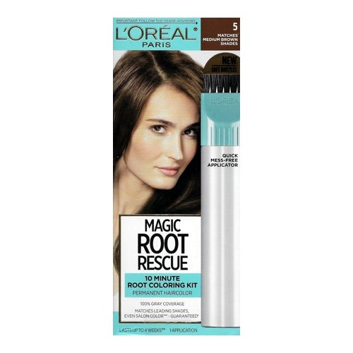 L'Oreal Magic Root Rescue 10-Minute Permanent Root Hair Coloring Kit (5 Medium Brown Shades) 100% Gray Coverage, Quick Fix Touch Up