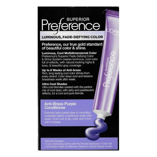 L'Oreal Superior Preference Luminous Fade-Defying Color + Anti-Brass Shine System Hair Color Permanent (7UA Ultra Ash Dark Blonde) Anti-Brass Purple Conditioner