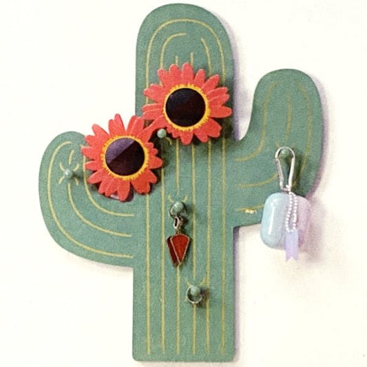 Newclassic Cactus Novelty Peg Rack Wall Decor - Green/Gold (11.5" x 14.5") Ready-to-Hang