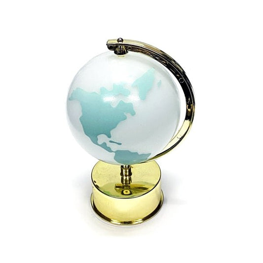 Ankyo Rotating World Globe Decor on Stand - White/Gold/Green (7.25" x 4.25")