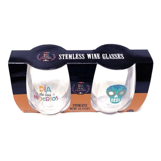 Evriholder Cocktail Stemless Wine Glass 2-Piece Set - Dia del los Muertos (16 fl. oz. ea.)