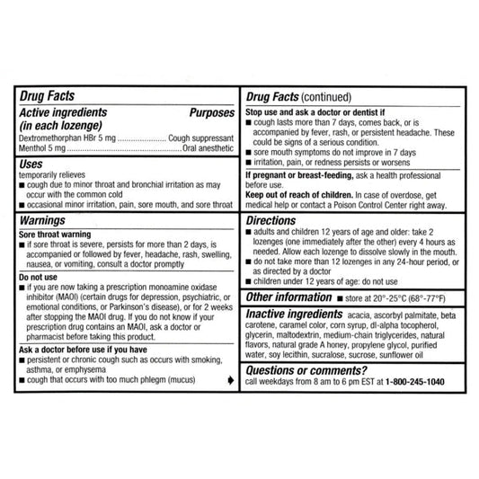 Robitussin Adult Honey Medi-Soothers Cough/Sore Throat Medicated Lozenges - Honey Lemon (16 Pack) Relieves Cough and Sore Throat Pain