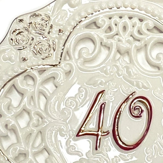 Ganz Ruby Red 40 Anniversary Decorative Plate with Hanger - Die-Cut, Embossed, Gold Accents (7" x 7")