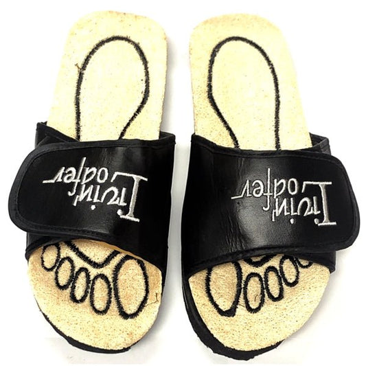 Livin' Loofah Adjustable Strap Slide Sandals with Loofah Inserts - Black (Select Unisex Size) Massages While Gently Exfoliating
