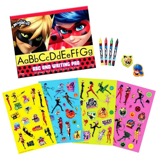 Miraculous Learning Handwriting Primary Tablet Pad Set - Pad/Crayons/Erasers/Stickers (11-Piece Set) For Grade PreK to Grade 1