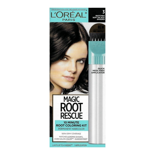L'Oreal Magic Root Rescue 10-Minute Permanent Root Hair Coloring Kit (3 Soft Black) 100% Gray Coverage, Quick Fix Touch Up
