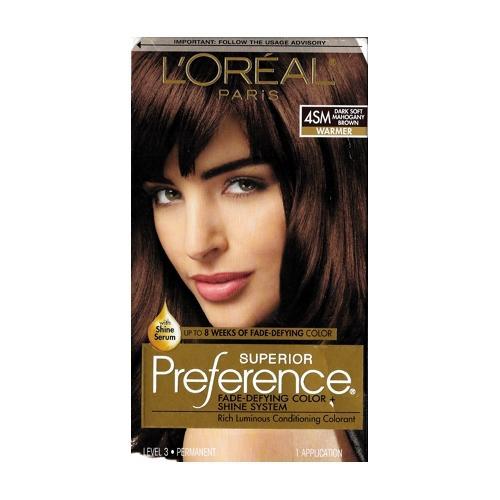 L'Oreal Superior Preference Fade-Defying Color + Shine System Hair Color Permanent (4SM Dark Soft Mahogany Brown)