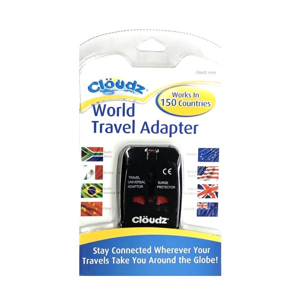Cloudz World Travel Universal Adapter - Black (Works in 150 Countries) Retractable Power Pins